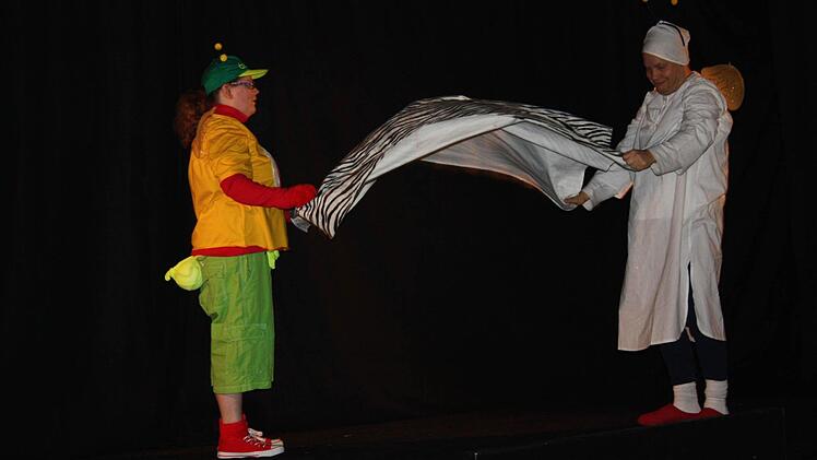 Er kam damit auf Projektleiterin Cati Wörner des ursprünglich als Schwarzlichttheater gegründeten Ensembles zu und lief offene Türen ein. Gut zwei Jahre Vorbereitungszeit waren nötig, dann stand die erste Aufführung. Das Schwarzlichttheater wurde eingebaut, sodass zur Begeisterung der Zuschauer auch am Samstag die Szenenbeleuchtung immer wieder wechselte.