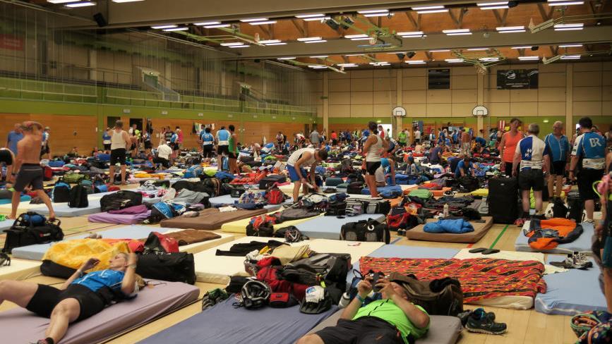 Das haben die großen Lastwagen des THW längst angefahren. Es gilt, die Matratzen in die Schlafquartiere zu bringen: meist sind es Turnhallen, in denen bis zu 400 Personen Platz finden. Von Vorteil sind diese spartanischen Unterkünfte, weil man hier die entsprechenden sanitären Anlagen vorfindet: Toiletten und vor allem Duschen, nach denen man nach den schweißtreibenden Kilometern lechzt, damit man dann erfrischt zur großen Party mit der jeweiligen Band gehen kann. Und so mancher sinkt dann gegen 23 Uhr erschöpft auf sein Matratzenlager, denn spätestens um 9 Uhr geht es tags darauf wieder an den Start.