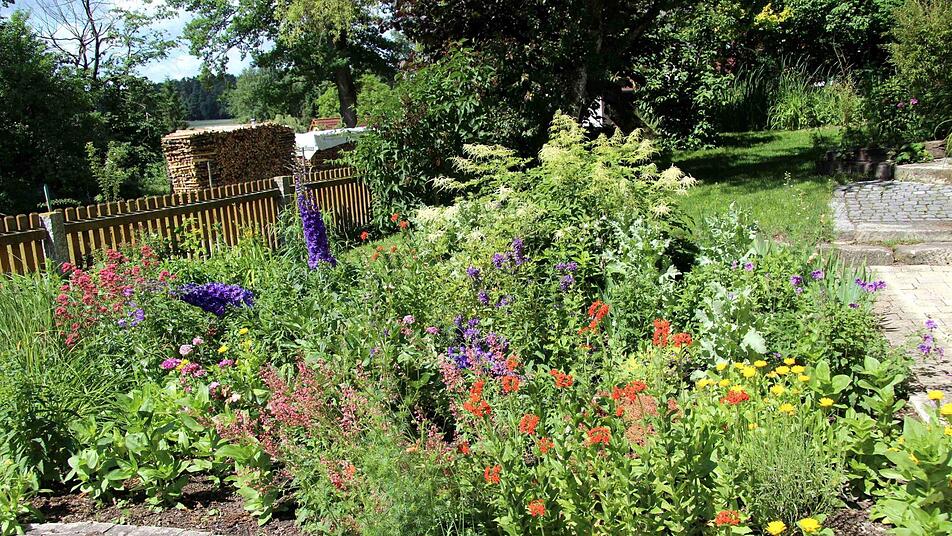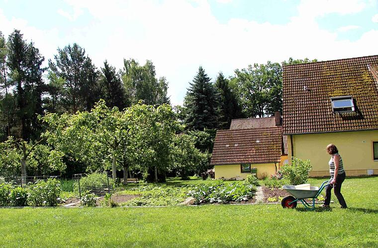 Sie erzählt von jeder Menge an Nisthöhlen in den alten Eichenbäumen, die von Vögeln und Fledermäusen bewohnt werden. "Wenn im Sommer nachts im Obergeschoss die Fenster offensind, verirrt sich schon mal eine Fledermaus und hängt irgendwo im Zimmer, die ich dann eben behutsam wieder nach draußen bringe", erzählt Susanne Hausmann. Was so spielerisch verwunschen ausschaut, bedeutet allerdings auch harte Arbeit, aber das Grün um das Haus verspricht nicht nur gesundes Obst und Gemüse, sondern auch den Abbau von Stress durch Entspannen, Naturerleben und körperliche Aktivität.