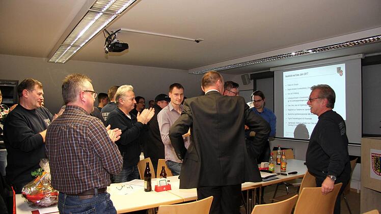 Stehend applaudierend bedankten sich die aktiven Feuerwehrleute bei ihrem langjährigen Ersten Kommandanten. Oed dankte seinen Mitstreitern und Feuerwehrkameraden, vor allem seinem Leitungsteam und der Vorstandschaft für die gemeinsame Arbeit in der Feuerwehr. Er dankte aber auch seiner Familie für den Rückhalt, "ohne den eine solche Aufgabe nicht zu meistern gewesen wäre".