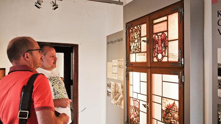 Biehler führt Kowa in den Schlosshof. Aus der Stadtgeschichte interessiert ihn besonders der Abbruch des alten Bergfrieds.