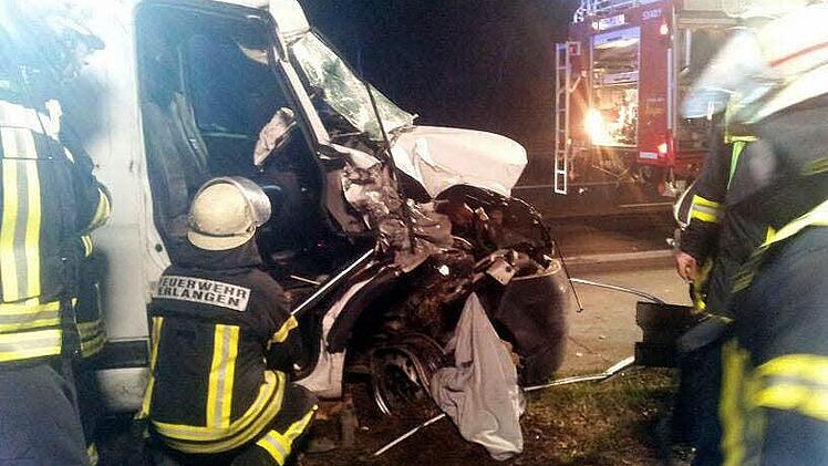 Die Rettung stellte sich für die herbeigerufenen Feuerwehren aus Dechsendorf, Heßdorf und der Ständigen Wache Erlangen sowie den Rettungskräften des Roten Kreuzes für schwierig heraus. Denn der Fahrer war eingeklemmt und konnte wegen der englischen Bauart des Sprinters (Lenkrad auf der rechten Seite) erst aus dem Fahrzeug befreit werden, nachdem die Leitplanke abgeschnitten wurde. Der Fahrer wurde schwerverletzt in die Erlanger Klinik gebracht. Sein 34-jähriger Beifahrer blieb unverletzt, ebenso der 58-jährige Fahrer des Kleinlasters.
