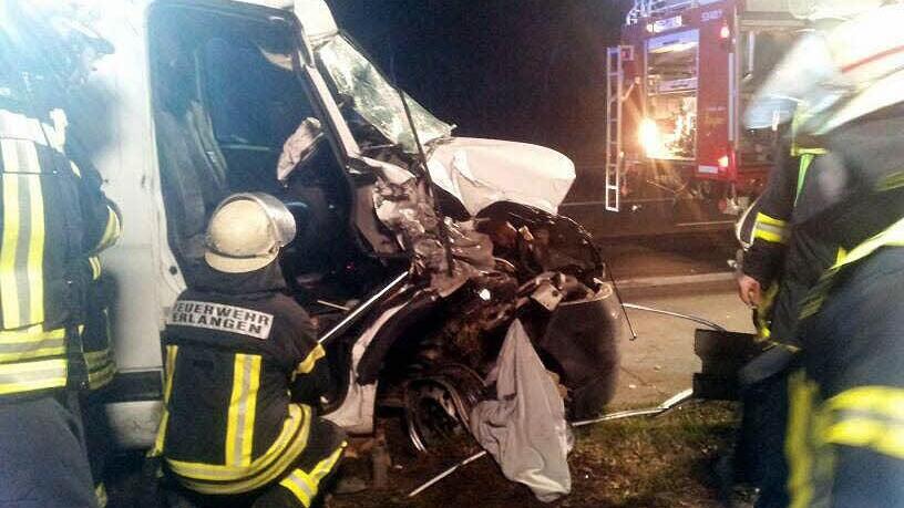 Am Mittwochmorgen gegen 4.45 Uhr ereignete sich ein schwerer Autounfall auf der A3 zwischen den Auffahrten Erlangen-West und Höchstadt in Fahrtrichtung Würzburg. Aus bisher noch ungeklärter Ursache war der englische Fahrer eines Sprinters in das Heck eines Kleinlasters gefahren. Bereits durch den Aufprall wurde das englische Fahrzeug schwer beschädigt. In Folge verlor der Fahrer die Kontrolle über das Fahrzeug.
