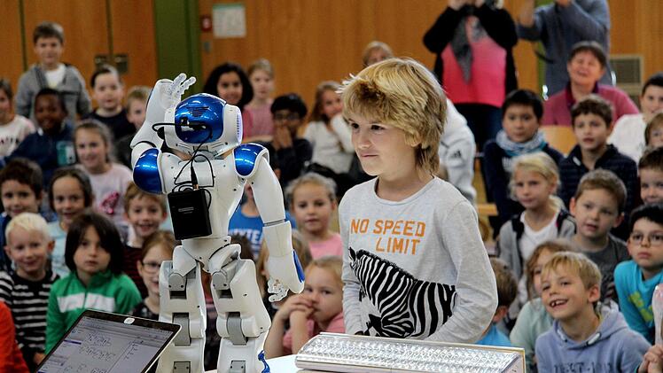 Ein kleiner Roboter besuchte und begeisterte am Donnerstag die Schüler in der Niederndorfer Cuntz-Reyther-Schule.