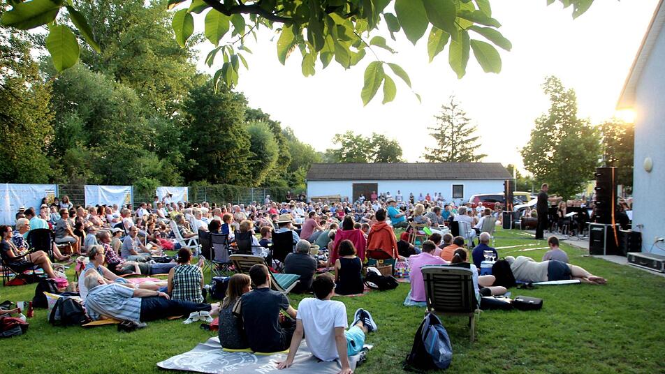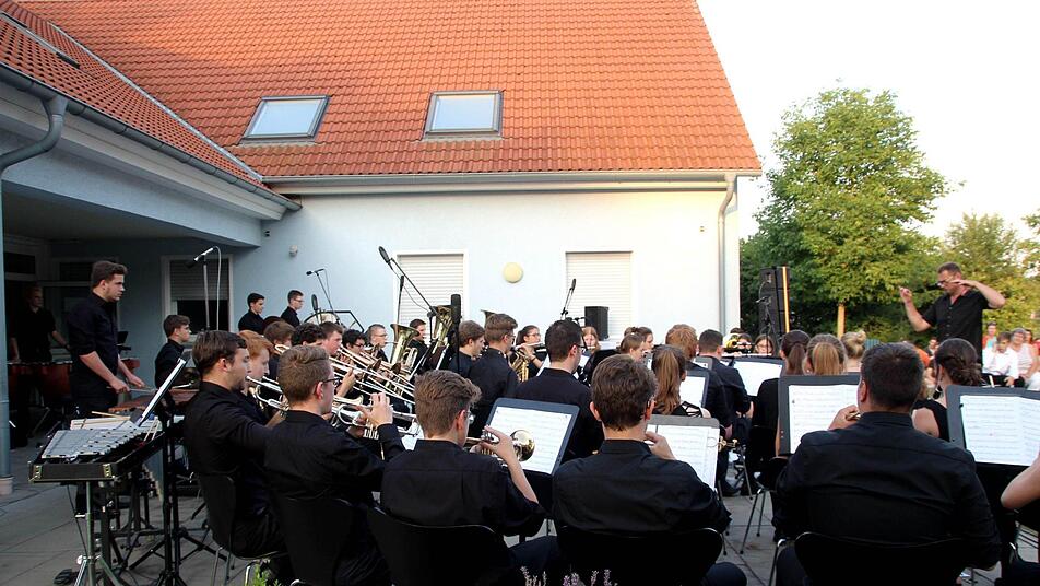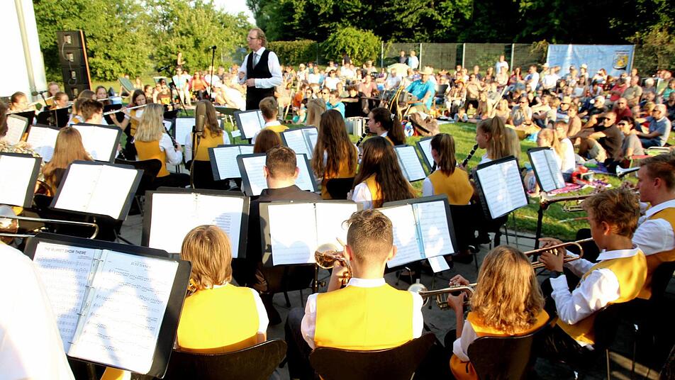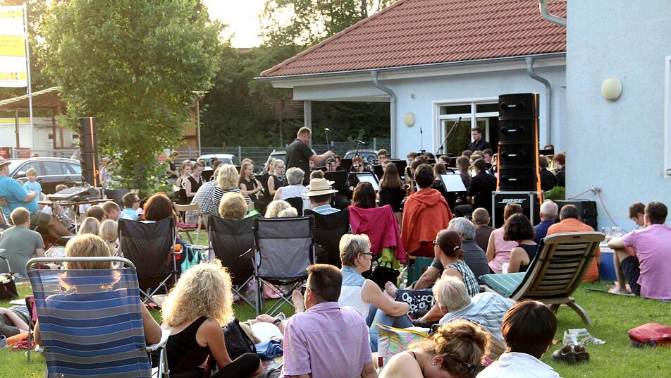 Die Stadtjugendkapelle hatte auf die Wiese ihres Vereinsgeländes eingeladen. Die Besucher genossen die Musik auf Decken und Campingstühlen.