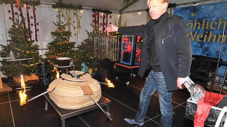 Jordan präsentierte seinem Publikum eine zauberhafte Reise durch die Welt der Magie, so auch in Herzogenaurach beim lebendigen Adventskalender. Bei seinen faszinierenden und gefahrvollen Illusionen hielten die Zuschauer auf dem Marktplatz des Öfteren den Atem an, um anschließend dem Künstler mit Applaus für die Darbietung zu danken.