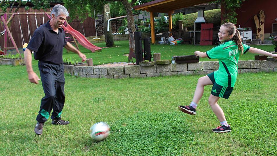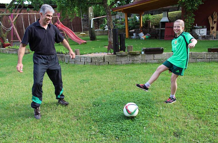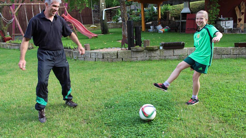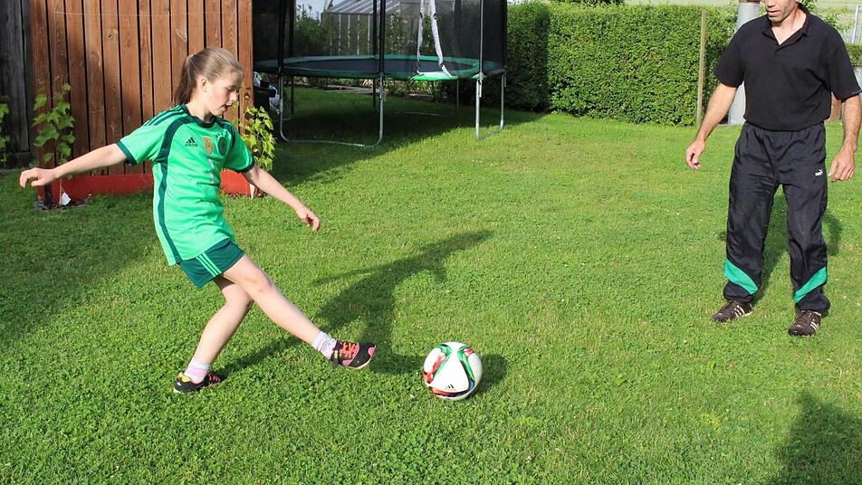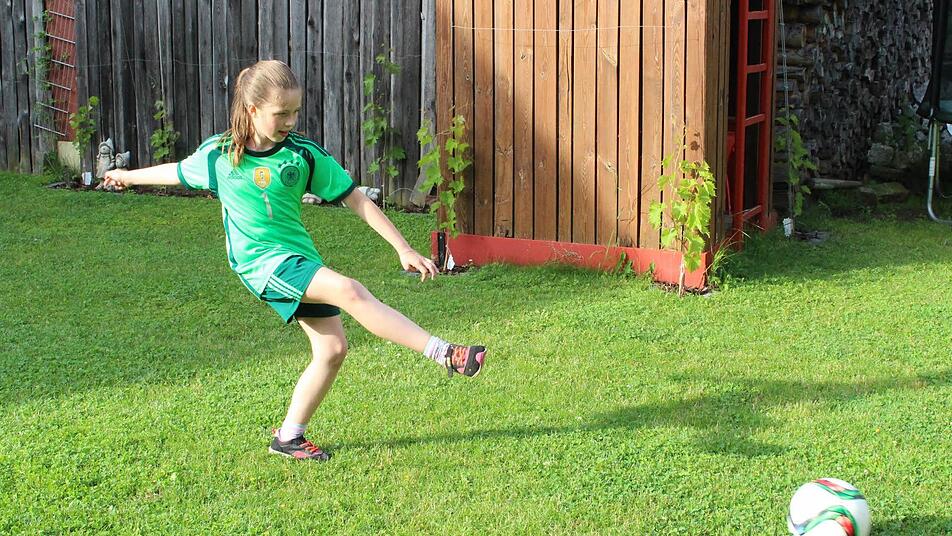 Jungenhofen das Spielfeld von Antonia Bittel. Hier kickt sie schon mal mit ihrem Vater Armin. Viel lieber würde sie jedoch in den großen Fußballarenen der Welt spielen. Die elfjährige Schülerin des Höchstadter Gymnasiums hat einen Berufstraum: Sie würde gerne Fußballspielerin werden.