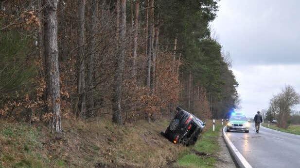 Auf regennasser Fahrbahn ist eine 33-jährige Pkw-Fahrerin am Samstagnachmittag zwischen Weisendorf und Hammerbach von der Fahrbahn abgekommen und mit ihrem Wagen im Graben gelandet. Sie wurde dabei leicht verletzt.