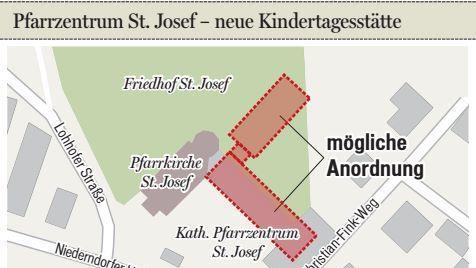 Direkt am Sankt-Josef-Platz soll eine Betreuungseinrichtung mit drei Kindergarten- und vier Krippengruppen entstehen.