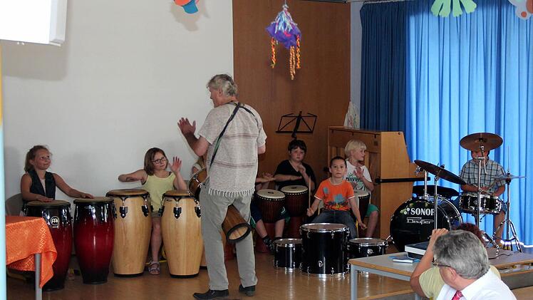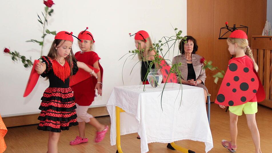 Konrektorin Gabriele Träger begrüßte nach der Percussiongruppe unter Claus Zwanziger die Vertreter aller Höchstadter Schulen, der Polizei, Gäste aus aus Politik und Wirtschaft, den Elternbeirat und den Förderverein. Die eifrigen Schüler zeigten in einem kurzen Theaterstück, wie sie sich Frau Lommers Pension vorstellen, verabschiedeten sich englisch mit "Best wishes" und der Kinderchor unter der Musikpädagogin Maria Thamm-Kaufmann hatte alle guten Wünsche in ein Lied verpackt.