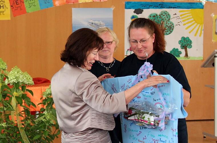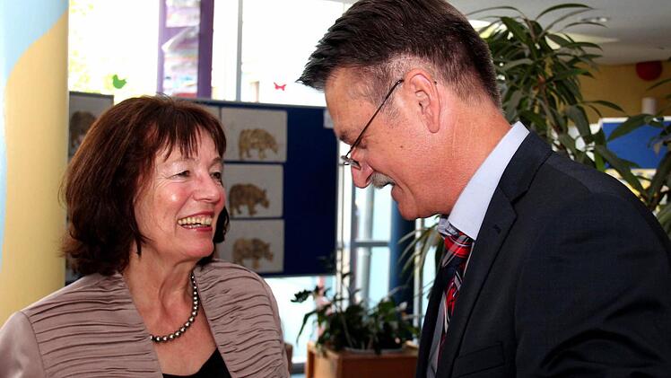 Pfarrer Fritz Schäfers und Dekan Kilian Kemmers Grußworte endeten mit dem Lied der Hortkinder: "Frau Lommer, Sie sind der Hit!" Bürgermeister Gerald Brehm (JL) meinte schmunzelnd: "Mich hat keiner gefragt, ob sie in Rente gehen kann!" Er bedankte sich für das, was sie für ihre Heimatstadt geleistet hat. Schulrat Siegfried David - ein alter Bekannter der Rektorin - blickte zurück in das Leben und das schulische Wirken der scheidenden Schulleiterin.