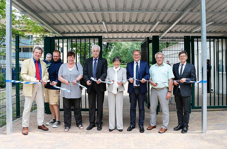 Die symbolische Handlung stand am Ende einer Reihe von Gesprächen mit den Anwohnern der Aufnahmeeinrichtung Oberfranken (AEO): Oberbürgermeister Andreas Starke (SPD), Regierungspräsidentin Heidrun Piwernetz, AEO-Leiter Markus Oesterlein und weitere Akteure durchschnitten das weiß-blaue Band vor dem neuen Fußgängertor am Erlenweg 4.