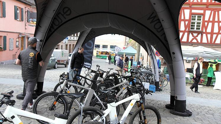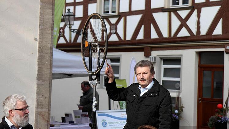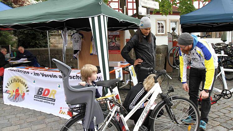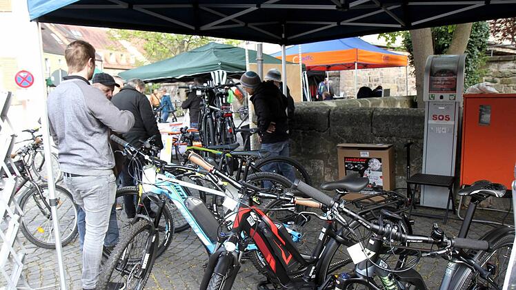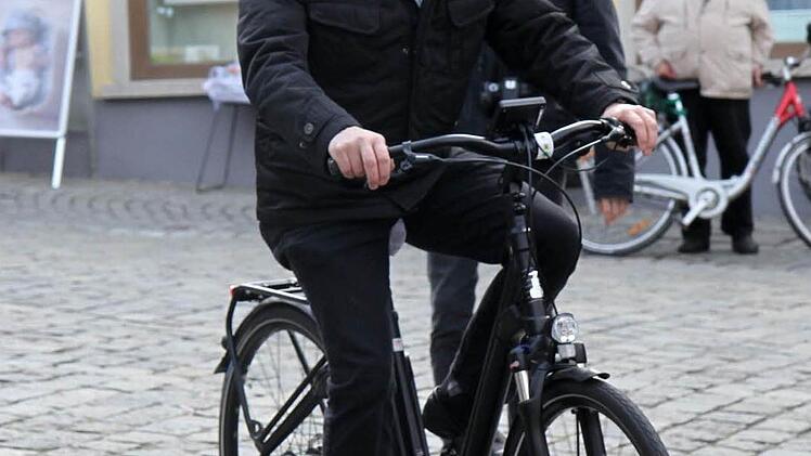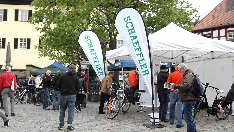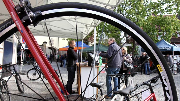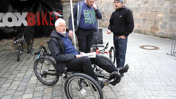 Die Radlfahrer hatten allerdings bei dem vielfältigen Angebot auf dem Marktplatz auch die Qual der Wahl, denn es konnten Räder in den unterschiedlichsten Typen und Preisklassen besichtigt und auch ausprobiert werden. Stadtrat Schwab sauste verdächtig schnell über den Marktplatz, ohne sich anzustrengen. "Fährt sich ganz flott und ist eigentlich auch kein Wunder, da ist ja auch eine Schaeffler-Schaltung drin", meinte er nach seiner Rückkunft.