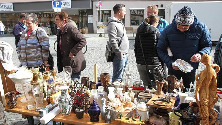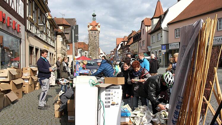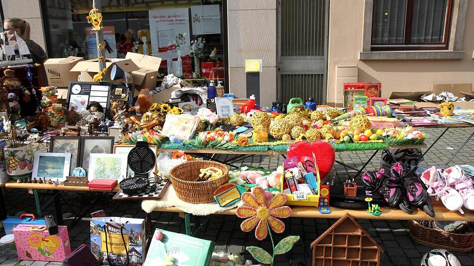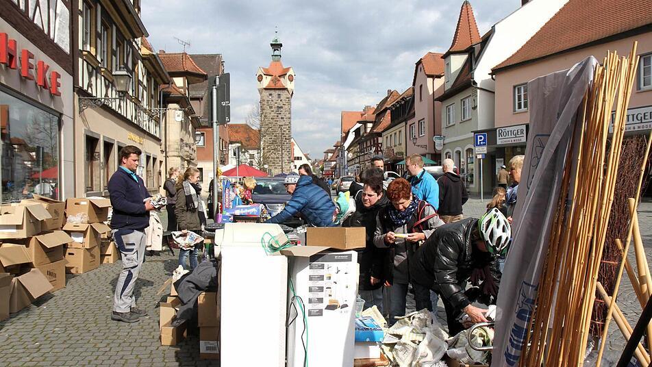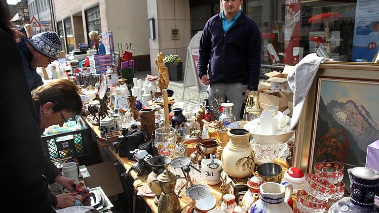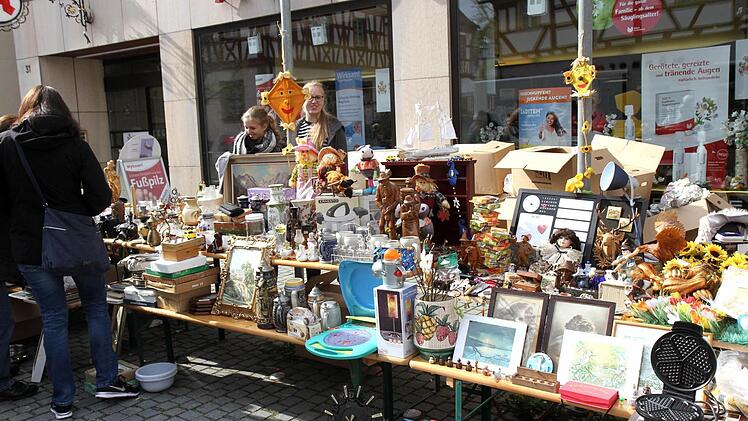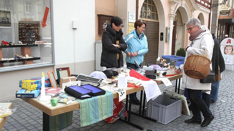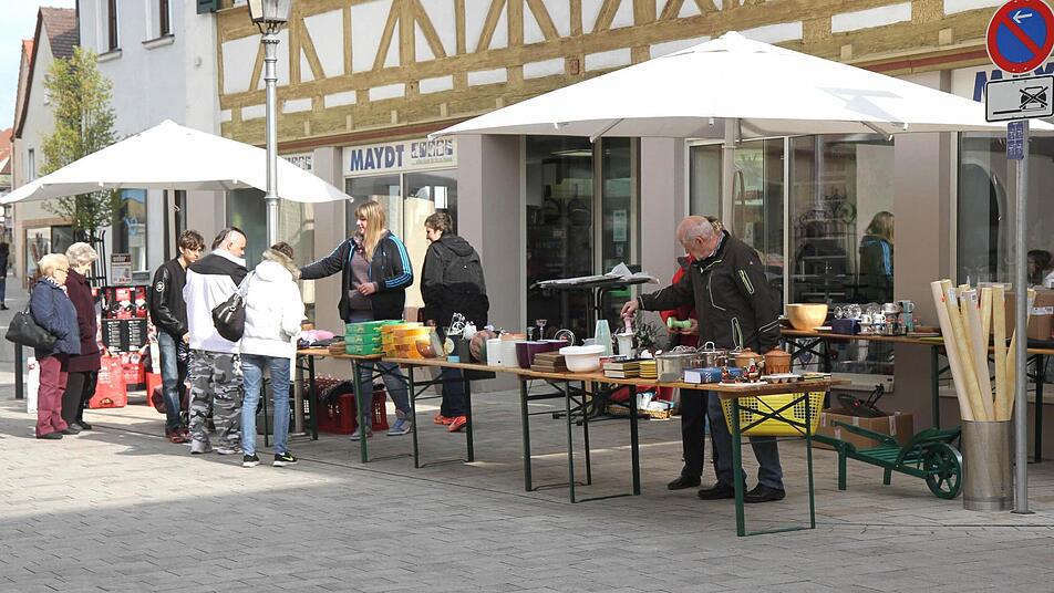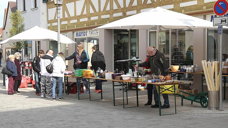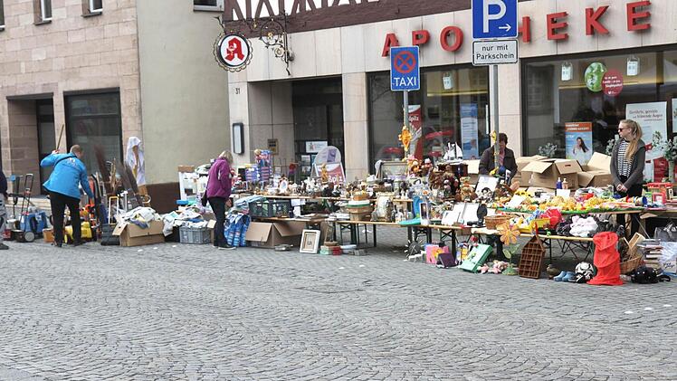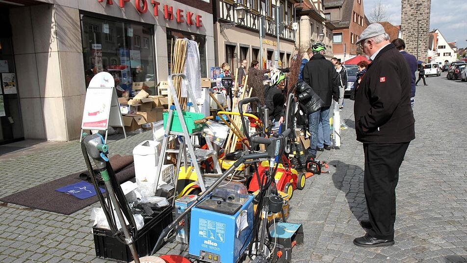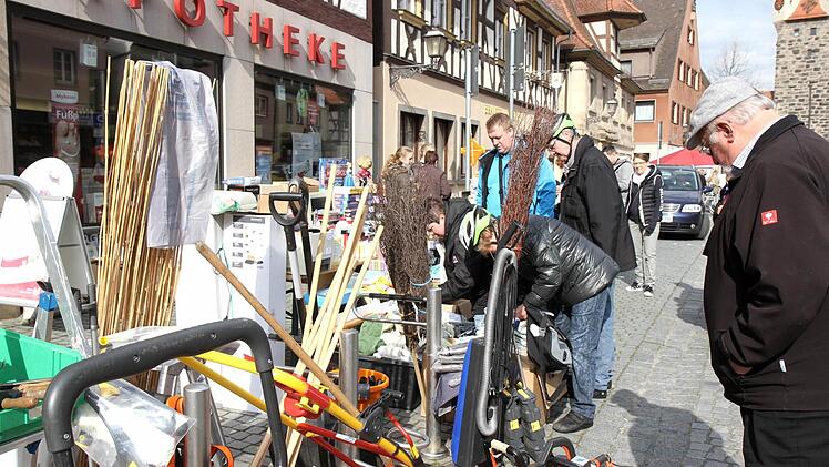 Erstaunlich, was die Geschäftsleute alles so in ihrem Lager aufbewahren. Das reichte vom Party-Deko-Artikel über Gartenzwerge und Hüte bis hin zu Klamotten und einen großen Stand mit Reinigungsmaschinen von Christian Kindler. Vor dem "Turmkämmerla" informierte Heiko Dilger, der Vorsitzende der Förder- und Werbegemeinschaft, über die Föwe und hatte Kaffee und Kuchen im Angebot.