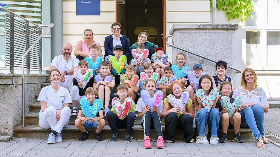 Eine Grundschulklasse hat ihre selbst genähten "Herzkissen" an die Frauenklinik in Erlangen gespendet. Die Kissen kommen Frauen zu Gute, die frisch an der Brust operiert wurden.