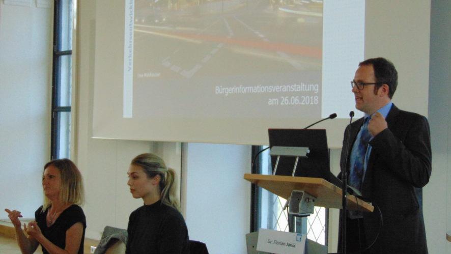 Im Vordergrund der Planungen stehe, den störenden Verkehr aus der Stadt zu bringen, meinte Christian Korda. Dazu gehöre auch der Durchgangsverkehr. "Nicht die Stadt will das haben. Wir haben harte Zwänge", erklärte Korda, denn die zulässigen Schadstoffwerte seien in einigen Straßen weit überschritten worden. Der Grund: zu enge Straßen, in denen der Autogestank hängen bleibt. Mit Geschwindigkeitsreduzierungen, auch mit Einbahnstraßen und einer weiträumigen Umfahrung der Innenstadt, einer Art Umgehungsstraße, soll hier gegengesteuert werden.