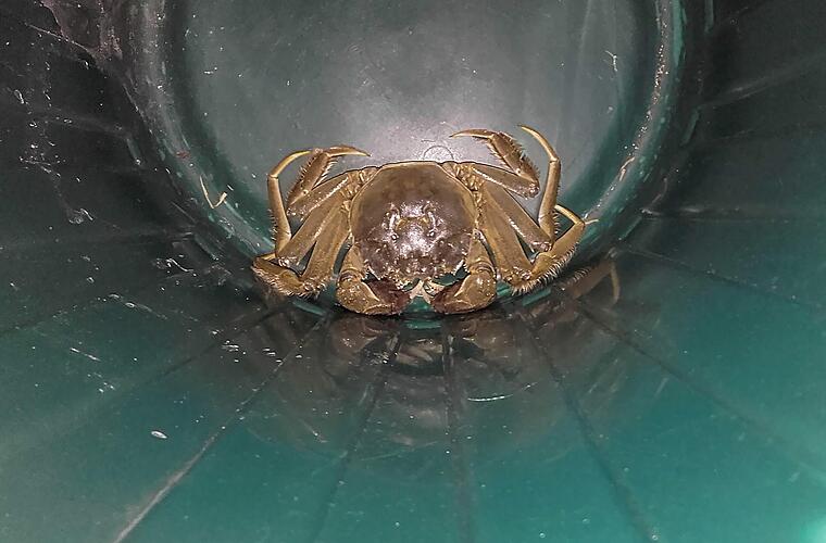 Mit der durchaus gefährlich klingenden Einsatzmeldung "eine Krabbe im Angriffsmodus" machte sich die Besatzung der Erlanger Feuerwehr auf den Weg zum Rathausplatz. Vor Ort trafen sie auf eine verirrte Chinesische Wollhandkrabbe, die ihrem Namen entsprechend durch einen dichten Haarpelz an den Scheren zu erkennen ist.