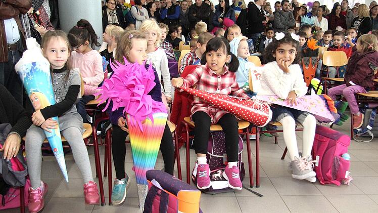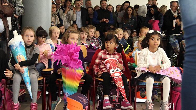 Bei der Anmeldung bekamen die Eltern Karten mit Tiermotiven ausgehändigt, die am ersten Schultag mitgebracht werden mussten. "Ich habe meine Fuchskarte daheim vergessen, aber ich bleibe trotzdem hier", erklärte Marie ganz selbstbewusst. Der Schulleiter hatte natürlich auch ihren Namen auf der Liste stehen, als er die Namen aufrief und die Klasse auf die Bühne bat. Ansonsten ging es vor allem um Organisatorisches und die Einladung zum ersten Elternabend.