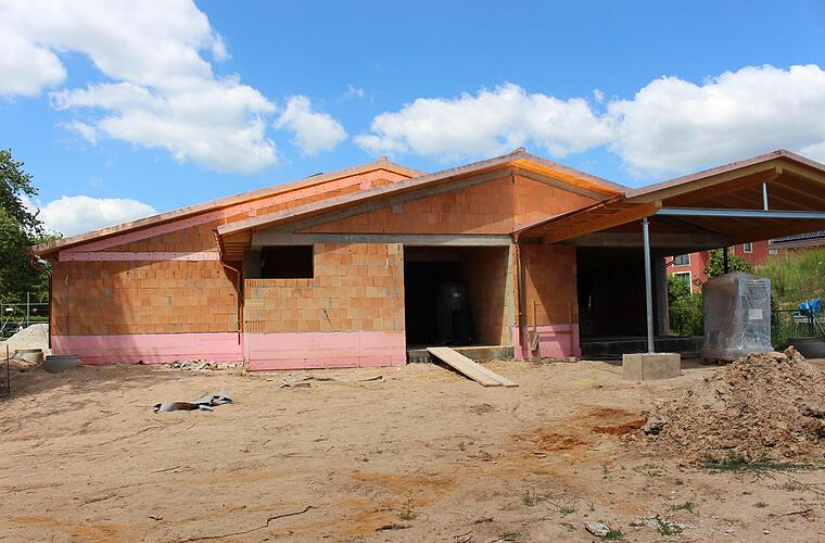 Nachdem der Rohbau fertiggestellt ist, hat der Gemeinderat auch die übrigen Arbeiten für die Erweiterung des evangelischen Kindergartens in Steppach in Auftrag gegeben. Zum Jahreswechsel soll er fertig sein.