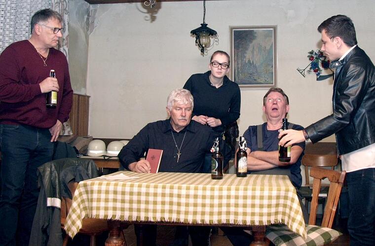 Unter den mehr oder weniger strengen Augen des Dorfpfarrers Kaslinger (Hans Kreiner) und dessen Haushälterin Fräulein Rehbein (Alexandra Düthorn) geschehen im Spritzenhaus jedoch noch turbulentere Dinge: "Des Teufels beste Anlaufadresse", wie die sittsame Pfarrhaushälterin es formuliert, denn dem Pfarrer schmeckt das Bier im Feuerwehrhaus.