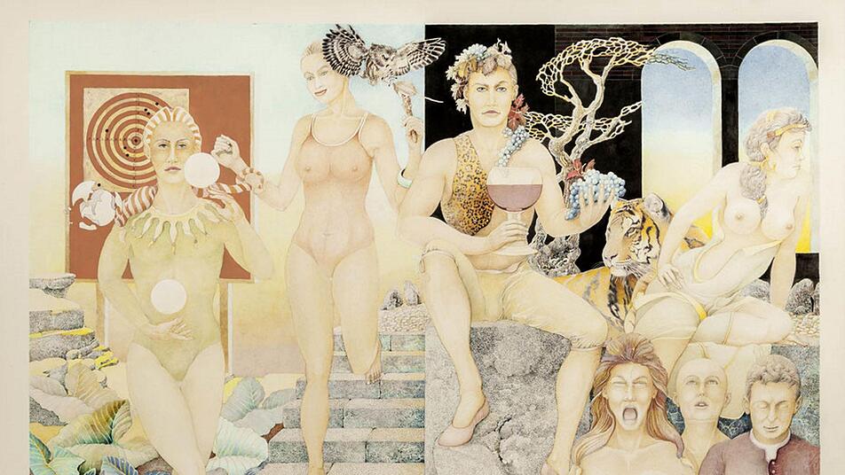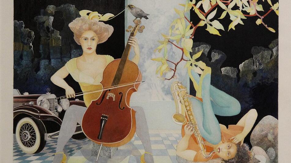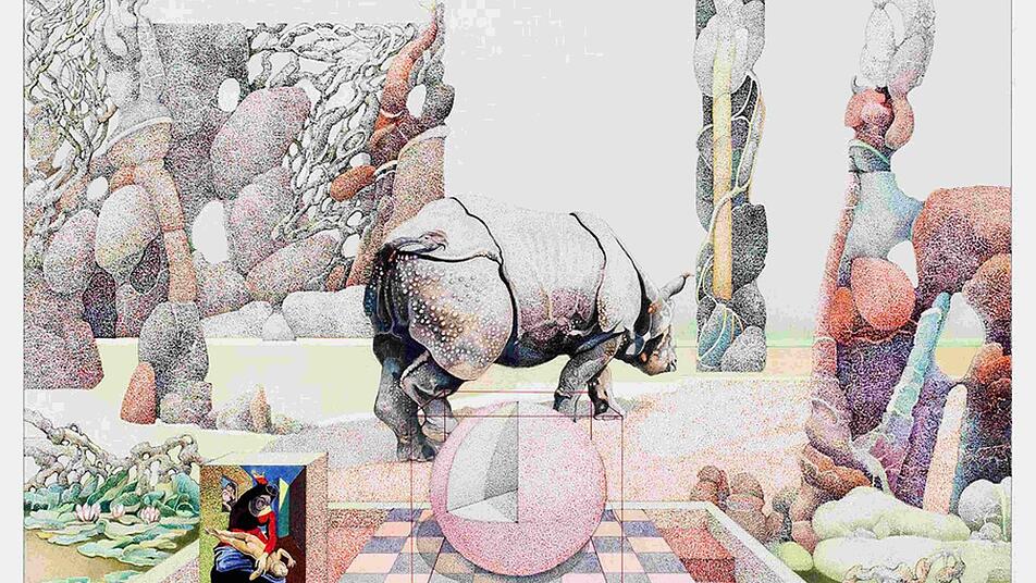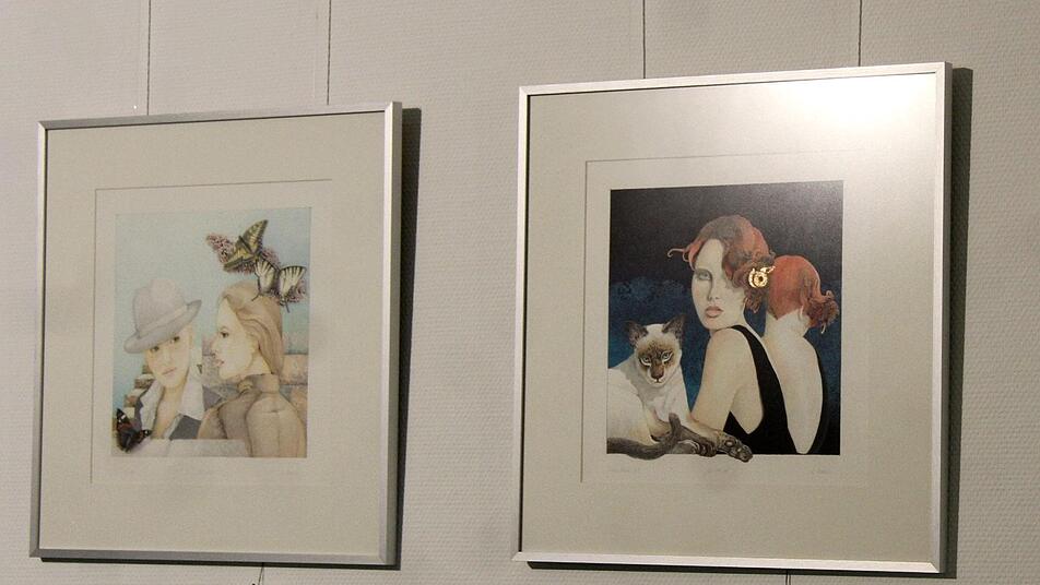 Die Bilder der sehenswerten Ausstellung erzählen Geschichten der griechischen oder persischen Mythologie. Zu sehen sind feenhafte Frauen mit bunten exotischen Schmetterlingen und Wildkatzen, aber auch Nashörner und Goldfische. Wer genau hinsieht, entdeckt auf dem mit Farbstiften/Gouache gestalteten "Nashorn im Mangrovenwald" den Ex-Papst Benedikt XVI.