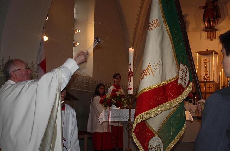 Den Katholischen Burschenverein Sterpersdorf gibt es schon lange nicht mehr - seine Fahne ist jedoch erhalten und erstrahlt jetzt in neuem Glanz. Ihre Weihe erhielt sie am Samstag im Anschluss an einen Gottesdienst in der Sterpersdorfer Kapelle durch Seelsorger Werner Fortuna.