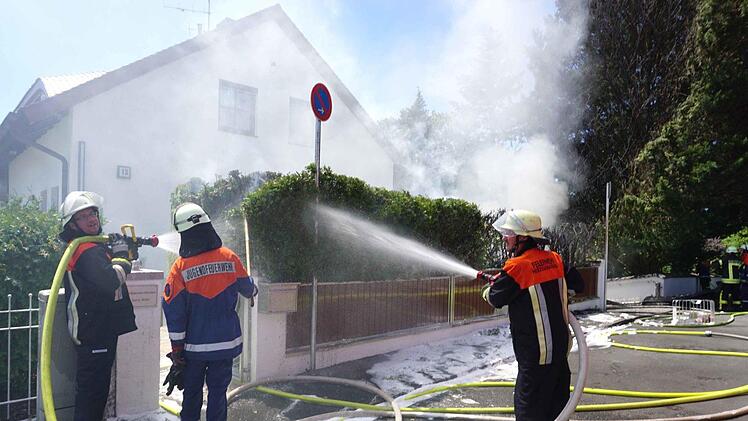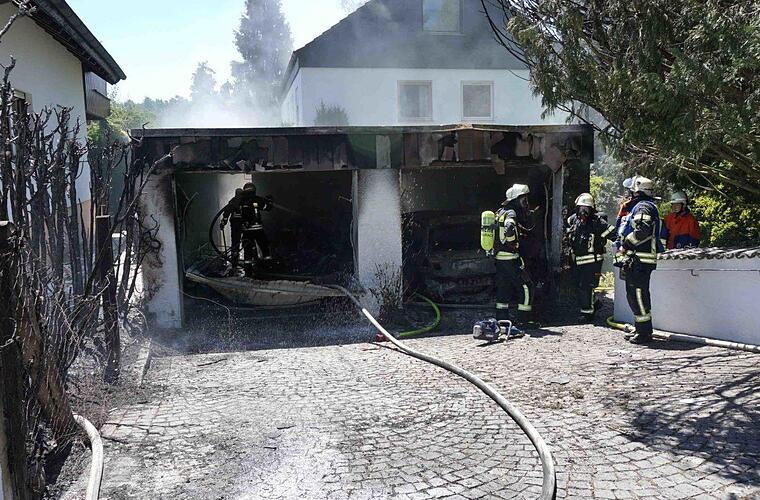 Ein heftiges Feuer vernichtete am Sonntag gegen 13 Uhr eine Doppelgarage an der Christoph-Daßler-Straße in