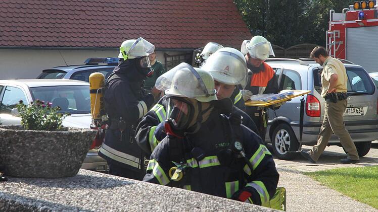 "Menschen in Gefahr", mit dieser Zusatzinformation wurde das Mehrfamilienhaus an der Durchgangsstraße angefahren. Aus einem Fenster des Treppenhauses quoll direkt unter dem Dach dichter Rauch hervor. Professionell erkannten die eingesetzten Kräfte allerdings, dass nicht etwa ein Dachstuhlbrand anstand, sondern der Rauch aus dem Keller durch das Treppenhaus nach oben stieg. Das völlig verqualmte Treppenhaus war dann aber auch der Grund, dass drei Einwohner des Hauses nicht mehr durch dasselbige fliehen konnten.