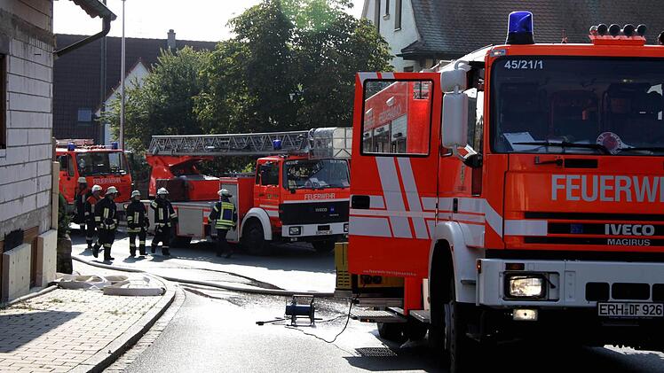 Ganz anders stellte sich die Situation dar, als um 14.03 Uhr die Mannschaften der Freiwilligen Feuerwehr Herzogenaurach erneut die Autos besetzten. "Wohnhausbrand in Hammerbach" hatte die Integrierte Leitstelle mitgeteilt und gleichzeitig die Herzogenauracher Wehr, die verschiedenen Ortswehren der Aurachstadt inklusive der Hammerbacher Kameraden, die Weisendorfer, Heßdorfer und Werksfeuerwehr Ina-Schaeffler mit auf den Alarmierungsplan gehoben.