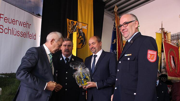 "Ein denkwürdiger Tag" war die Einweihung auch für Kreisbrandrat Bernhard Ziegmann. Viel Lob fand er für die "hoch motivierte, gut ausgebildete und hervorragend ausgerüstete Schlüsselfelder Wehr".
