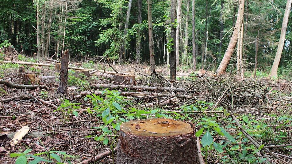 In der Mönau wurden Fichten, die vom Borkenkäfer befallen waren, gefällt. Die entstandene Freifläche soll jetzt nach Angaben des Revierleiters Matthias Breuer mit Flatterulmen bepflanzt werden, da der Käfer diese Baumart nicht befällt.