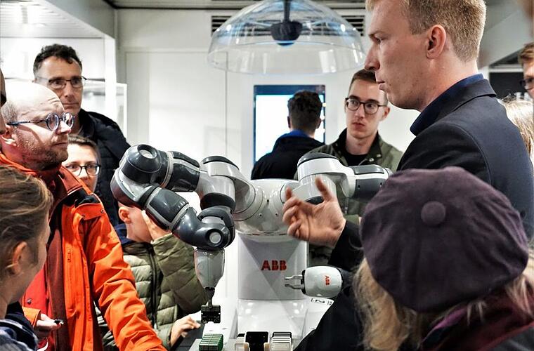 An etlichen Ständen der Technischen Fakultät und bei den Sponsoren Schaeffler und Siemens wurden Roboter, 3-D-Druck und Virtual-Reality-Brillen vorgeführt. Im futuristischen "Innotruck" vom BMBF führte Zweiarm-Roboter YuMi seine millimetergenau arbeitenden Greifhände vor. An der Technischen Fakultät bolzten Roboter - sie belegten Platz 2 bei der Roboter-WM 2017.