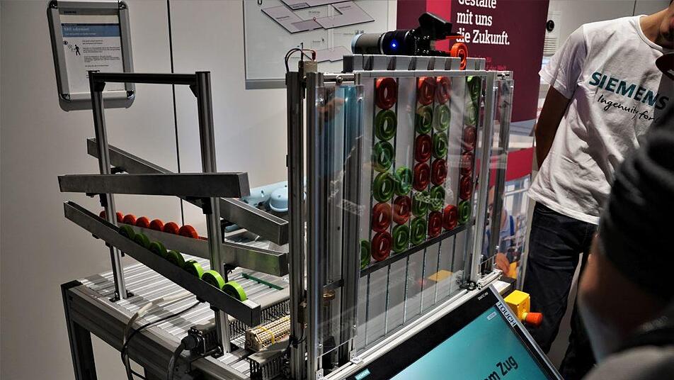 Im Ausbildungszentrum von Siemens spielte ein von Studenten gebauter Roboter "Vier gewinnt". Im höchsten Schwierigkeitsgrad gewinne meist der Roboter, so einer der Studenten.