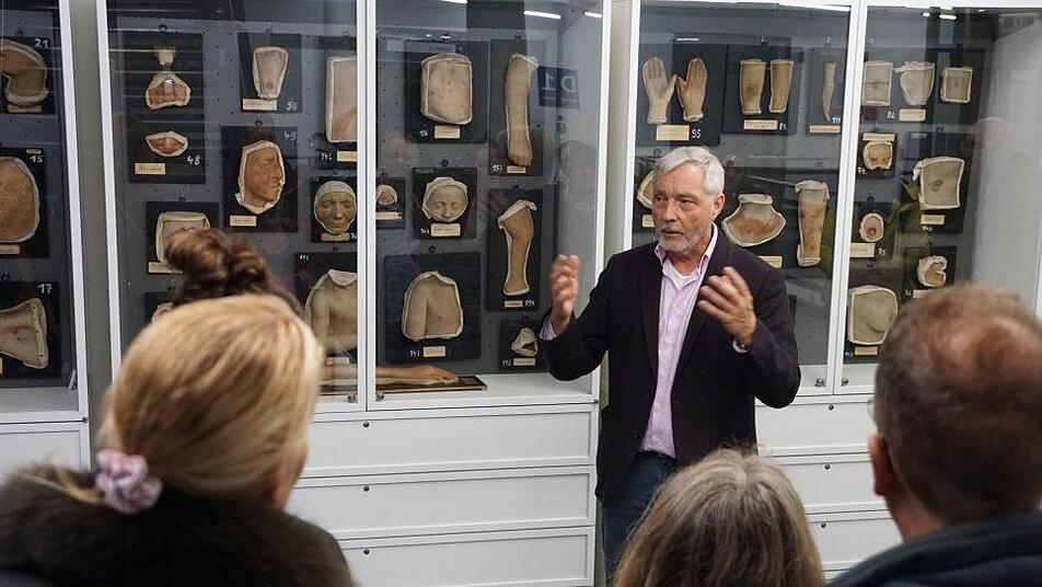 Herrschte im Außenbereich fast Jahrmarktstimmung, holte der Ernst die Besucher dann etwa in der Hautklinik ein, in der Prof. Michael Sticherling die Moulagen-Sammlung erläuterte. Dabei handelt es sich um über 100 Jahre alte Wachs-Nachbildungen von erkrankten Körperteilen echter Personen.