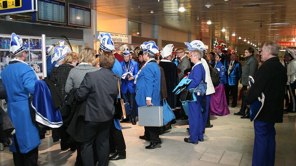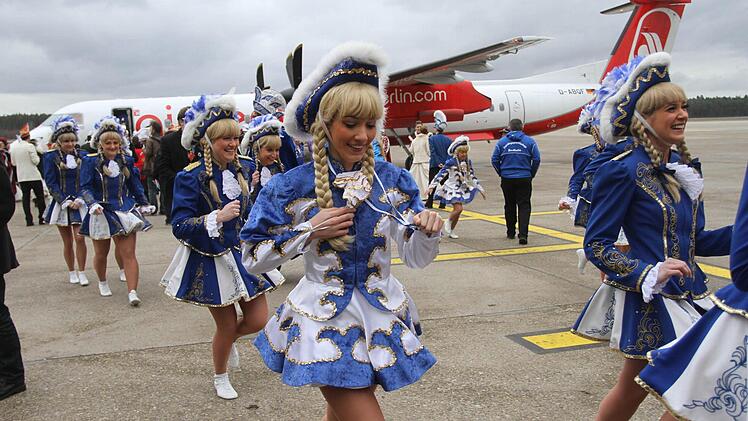 Das gibt es nur in Nürnberg: Zwischen normalen Reisenden streben zahlreiche Prinzenpaare im vollen Ornat zum Gate. Es ist mal wieder Prinzenflug: Die Tollitäten grüßen ihre Untertanen erst aus der Luft, bevor sie am Boden mit den Nürnbergern eine große Party feiern.