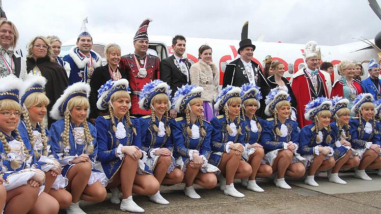 Es ist eine Kuriosität in der an Kuriositäten reichen Fastnachtsszene: der Nürnberger Prinzenflug. Jedes Jahr wimmelt der größte fränkische Flughafen plötzlich von Prinzessinnen in farbenfrohen Gewändern und Prinzen mit federgeschmückten Narrenkappen, umrahmt von Hofmarschallen und Gardemädchen. Vor den Augen überraschter Reisender, die oftmals auf dem Rückweg von der derzeit laufenden Spielwarenmesse in ihre Heimatländer sind, steigen am Sonntag rund 30 Prinzenpaare auf dem Rollfeld in eine Maschine - und heben ab zu einem Rundflug über ihr Hoheitsgebiet.