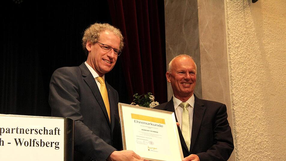 "Was wäre unser Altstadtfest ohne das jährliche Engagement unserer Freunde aus Wolfsberger, doch eigentlich unvorstellbar?", fragte Hacker unter stürmischen Beifall. Nicht nur aus diesem Grund, sondern auch für 50 Jahre Verdienst um die Städtepartnerschaft, überreichte er an Robert Schmid aus dem Wolfsberger Rathaus eine extra angefertigte Ehrenurkunde.