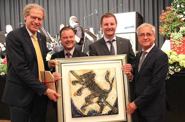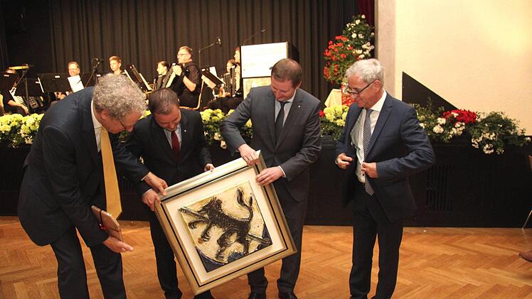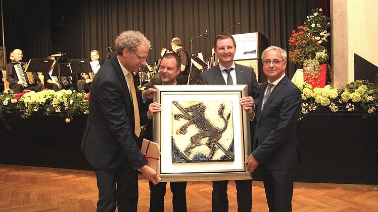 Die Vertreter der Stadt Wolfsberg überreichten den Herzogenauracher Vertretern eine Keramikarbeit. Und zum 50. Geburtstag gab es, weil die Partnerstadt reichlich mit Holz gesegnet sei, von Bürgermeister Hans-Peter Schlagholz ein "Schlagholz".