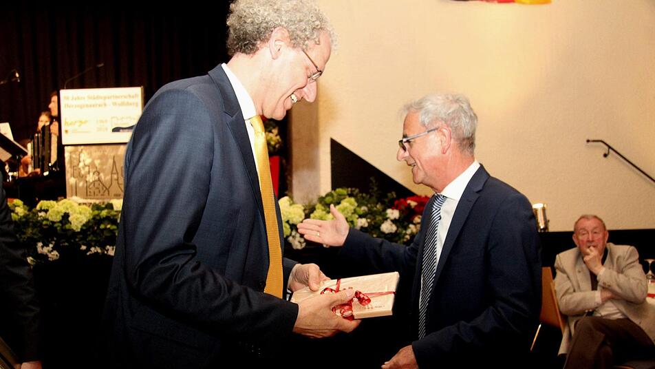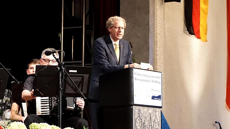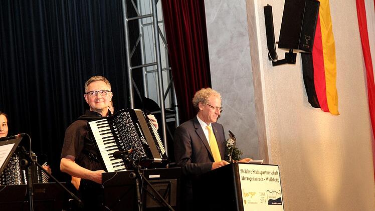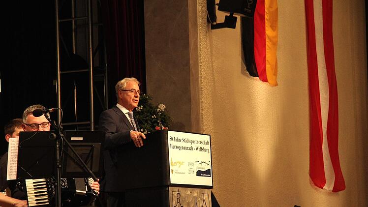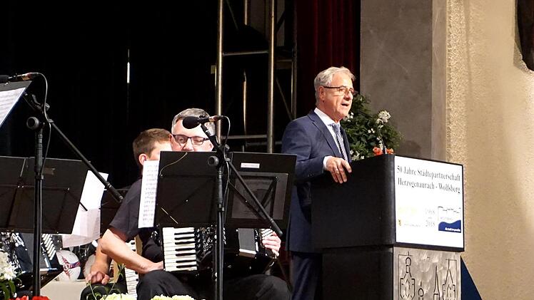Der Abend war nicht nur eine Feier mit Partnern, sondern mit Freunden. Inzwischen seien die vielen Begegnungen zwar schon eine Selbstverständlichkeit. "Mir geht es zumindest so und man hat fast Hemmungen die heutige Begegnung als etwas Besonderes zu feiern, wo es doch so selbstverständlich ist", schickte der Bürgermeister seiner Begrüßung mit einer langen Namensliste voraus. Die Feier sei ein Zeichen für alle Bürger in Wolfsberg und Herzogenaurach, vor allem für die zukünftig handelnden Generationen.