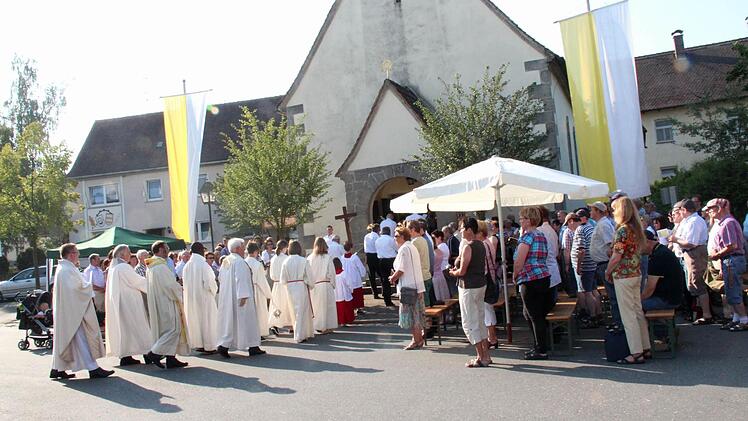 Das kleine Kirchlein bot gestern bei weitem nicht allen Gläubigen Platz, und so saßen die Gottesdienstbesucher auch draußen auf dem Kirchenplatz. Die Wohngruppe "Anna" der Barmherzigen Brüder in Gremsdorf sowie die Außenwohngruppe der Laufer Mühle, die in Weppersdorf im Hubertus-Haus lebt, befand sich wie jedes Jahr unter den Gästen. Auch am Altar ging es fast eng zu.