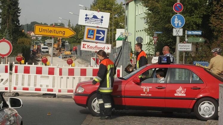 Ein Bagger hatte in der Rothenburger Straße in Höchstadt eine Gasleitung beschädigt. Das Leck konnte aber zügig abgedichtet werden.