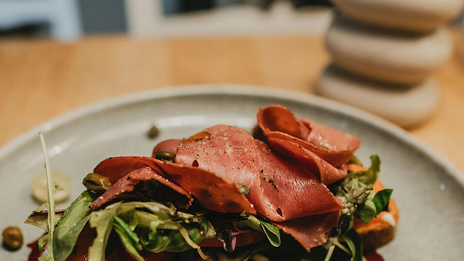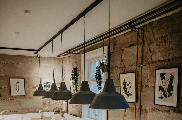 Die Einrichtung des Lokals sei vorher schon im skandinavischen Stil eingerichtet gewesen. "Das Konzept haben wir in vielen Bereichen übernommen", so Chris. Das Gebäude sei denkmalgeschützt, da Sandstein durch die Stadtmauer im Café hervorsticht. Vieles sei wiederverwendet, einige Möbelstücke stammten von den vorherigen Betreibern oder seien bei Auktionen ersteigert worden. "Alles ist sehr minimalistisch eingerichtet", erklärt der Café-Betreiber.