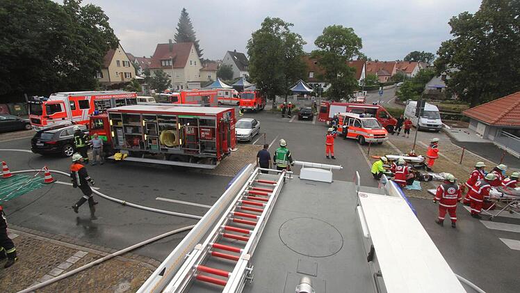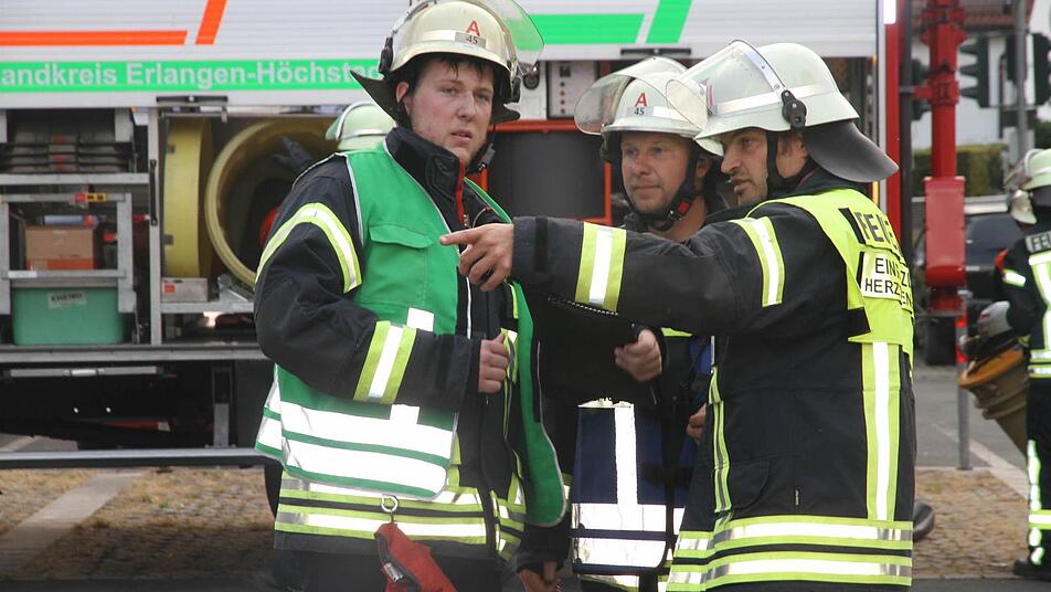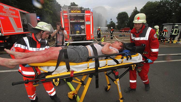 Nach wenigen Minuten vergessen die Einsatzkräfte, dass es sich bei dem Feuerwehreinsatz im Herzogenauracher Weihersbachgelände um eine Übung handelt. Dafür sorgen unter anderem die überzeugenden "Opfer".