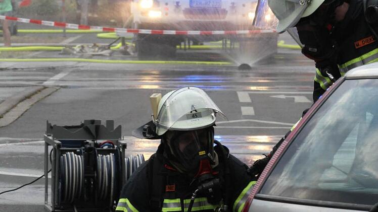 Mit der Lage gingen die Kräfte allerdings professionell um, wie auch die anwesende Bürgermeisterin Renate Schroff erkannte. "Zum Glück gibt es solche Übungen, das gibt Sicherheit", erklärte sie. Wichtig ist die Übung auch, weil die Kräfte lernen, besonnen vorzugehen. Die Eigensicherung spielte bei diesem Szenario eine wichtige Rolle. Es mache keinen Sinn, dass die Kräfte sich bei der Rettung anderer Person in Lebensgefahr brächten, erklärten die Beobachter, die akribisch jeden Schritt per Kamera und auf ihren Blöcken festhielten.