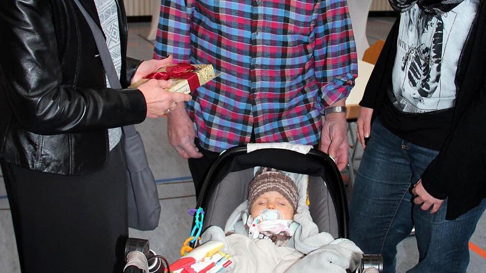 Zweite Bürgermeisterin Jutta Köhler beschenkte alle Adelsdorfer Kinder, die 2016 geboren wurden - genau 73 - mit einem Kirschkernkissen.