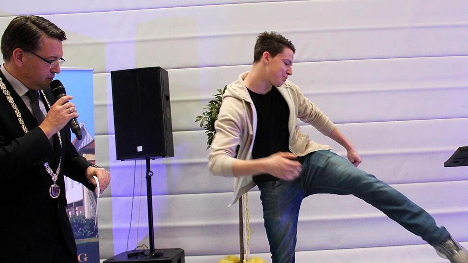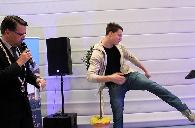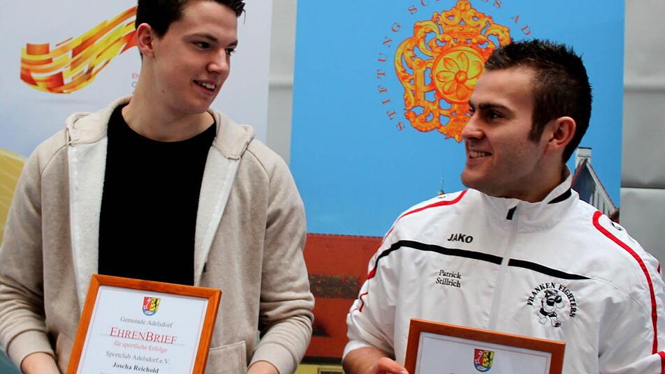Einen Ehrenbrief für sportliche Leistungen erhielt auch der 20-jährige Joscha Reichold vom SC Adelsdorf. Seit seinem dritten Lebensjahr spielt er Fußball, bis vor fünf Jahren beim ASV Weisendorf und seitdem beim SC Adelsdorf. Hier spielt er nun schon die dritte Saison in der ersten Mannschaft. Sein wunderschöner Treffer zum 2:1-Sieg gegen die DJK Hallerndorf wurde für den Bayerntreffer im August nominiert, der monatlich vom Bayerische Fußball-Verband und vom Bayerische Rundfunk gesuchte wird. Sechs Traumtore standen eine Woche lang zur Wahl. Der Sieger und seine Mannschaft sollten in der Sendung "Blickpunkt Sport" im Bayerischer Fernsehen geehrt werden. Joscha Reichold wurde leider nur Zweiter. "Beim Torwandschießen im Aktuellen Sportstudio hab' ich keinen einzigen Schuss versenkt, da hab' ich mir Jogi Löw zum Vorbild genommen", schmunzelte er.