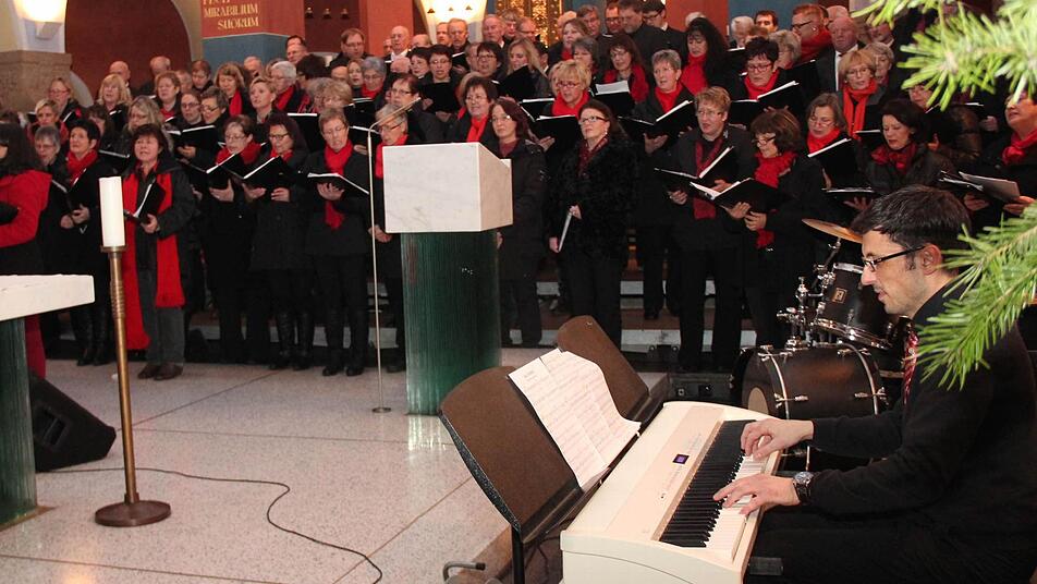 Der Gesang aus den Kehlen von 160 Männern und Frauen erfüllte das Gotteshaus und man spürte die große Begeisterung aller Beteiligten. Claus Keller und auch Yves Boutelant, die beiden Dirigenten, können stolz auf ihre große Sängerschar sein. Durchs Programm führte Stefan Karbacher. Die Feuerwehr hatte das Grillen übernommen, Mitglieder des Pfarrgemeinderates schenkten dampfenden Glühwein aus.
