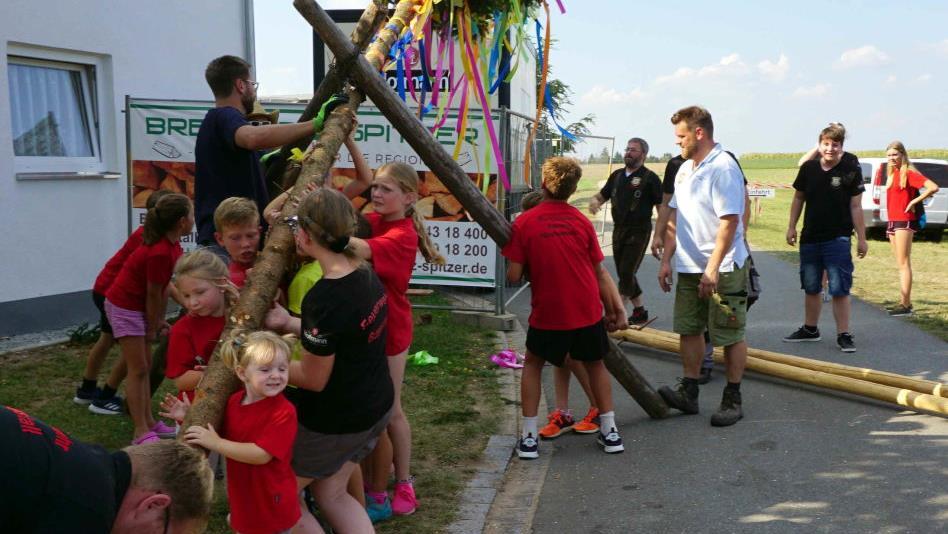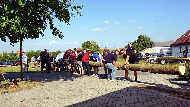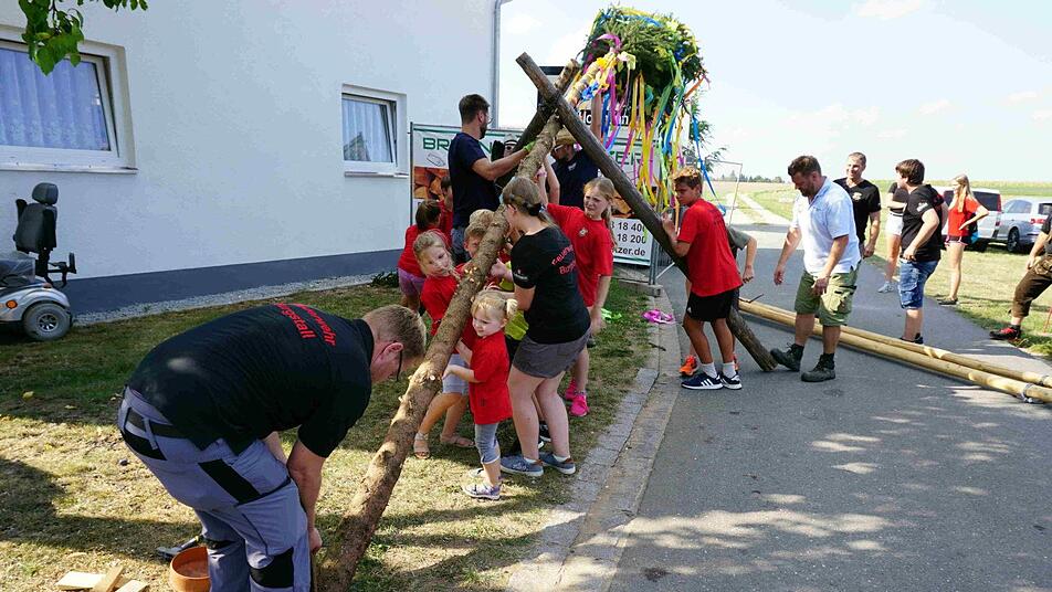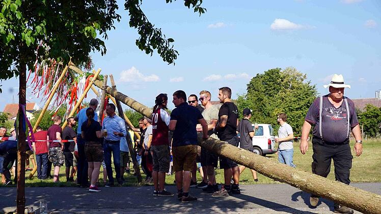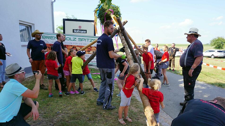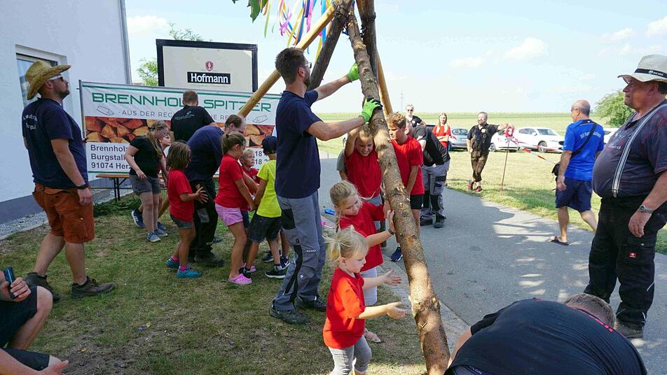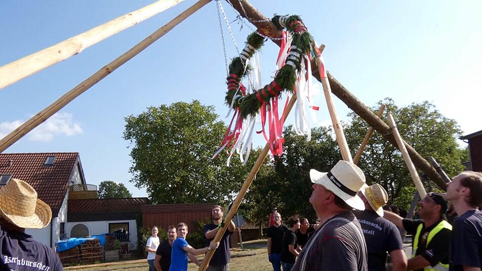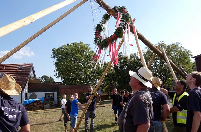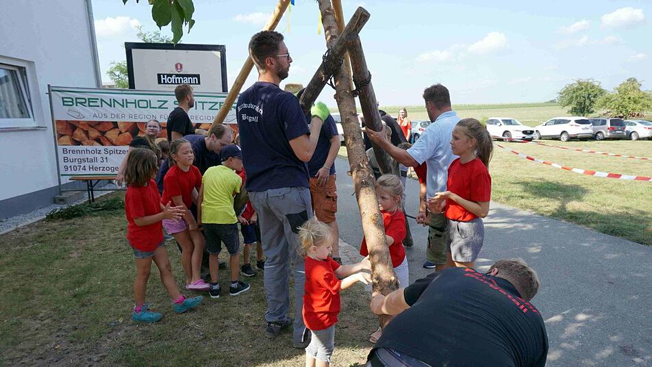 Bei der Burgstaller Kerwa folgte man Tradition, dass am Samstag zwei Bäume aufgestellt werden und der Kerwa-Nachwuchs zuerst sein Können unter Beweis stellt - unterstützt von stolzen Papas -, bevor die Ortsburschen ihre 26 Meter-Fichte in die Senkrechte brachten. Geballte Routine und Erfahrung am und rund um den Kerwa-Baum beweisen die Burschen aus dem Herzogenauracher Ortsteil schon seit 30 Jahren. Zur Jubiläums-Veranstaltung hievten sie unter der Leitung von Kommandant Daniel Nussel die Fichte in gut einer Stunde in die Senkrechte.