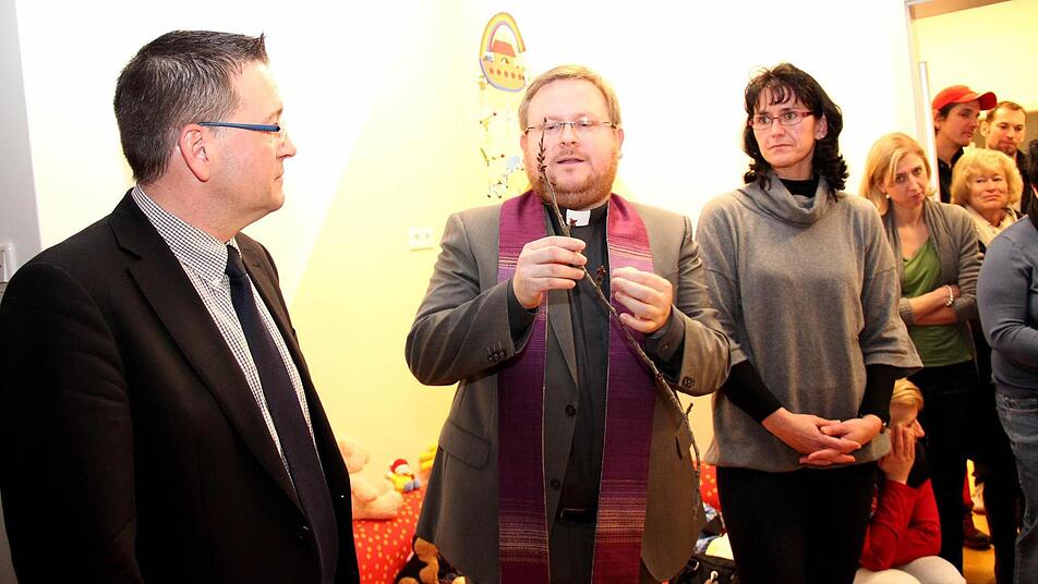 Pfarrer Thomas Ringer segnete die neue Kinderkrippe am Aischer Uttsberg. Bis zu 15 Buben und Mädchen finden darin Platz.
