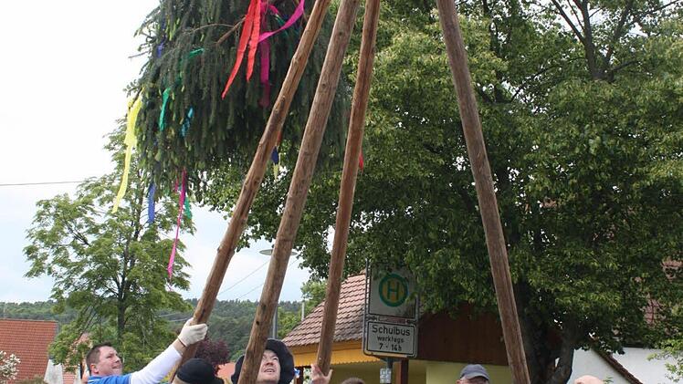 "Der Baum muss zum Dorf passen", sagte Vereinsgründungsmitglied Manfred Hahn, der auch für das Aussuchen der richtigen Fichte zuständig ist. Bei knapp 200 Einwohnern - davon sind 106 in der Kerwagemeinschaft Mitglied - befand er die 19 Meter also für genau richtig.